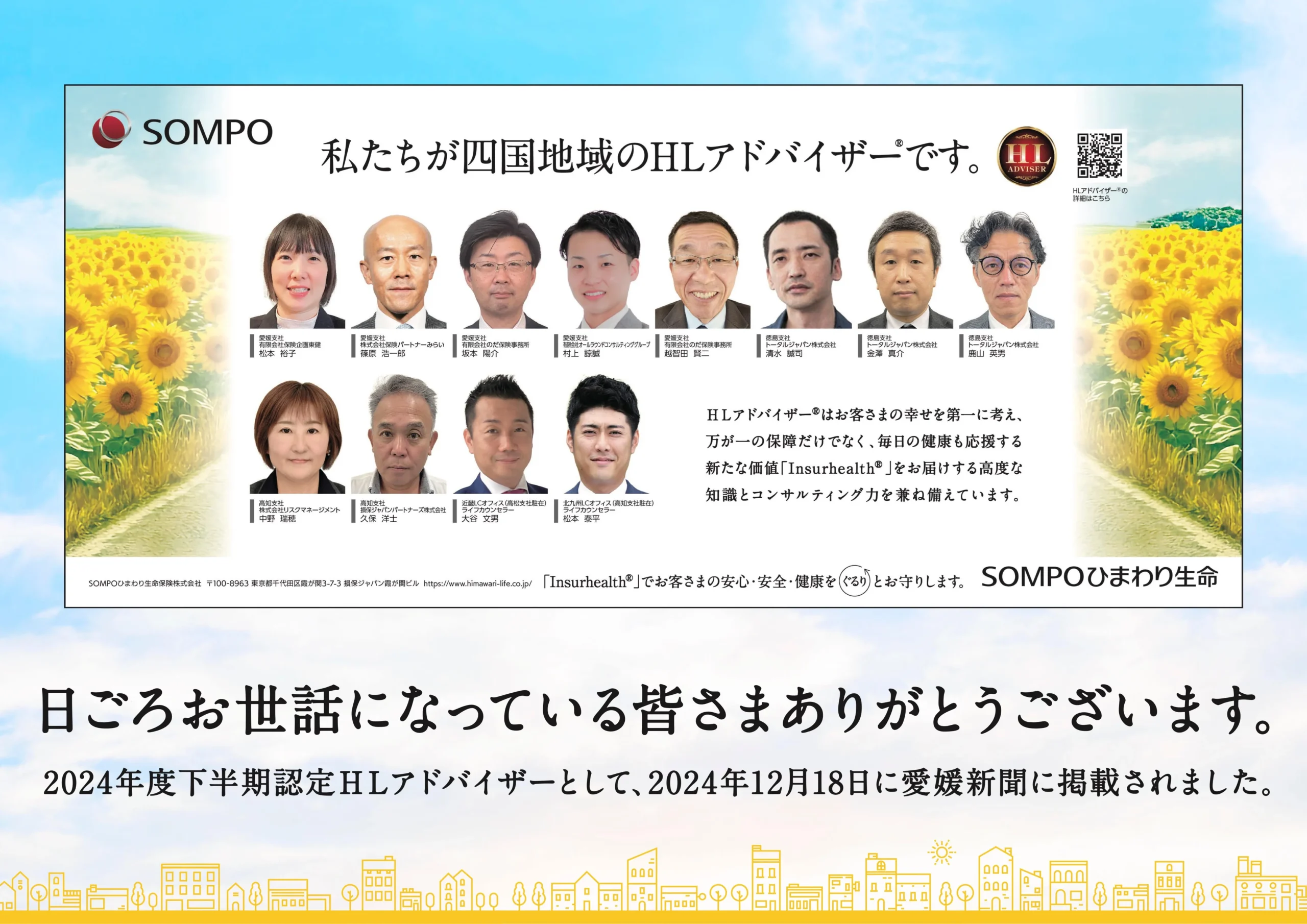 この度、村上諒誠がSOMPOひまわり生命保険株式会社のHLアドバイザーとして、2024年12月18日の愛媛新聞に掲載されました。