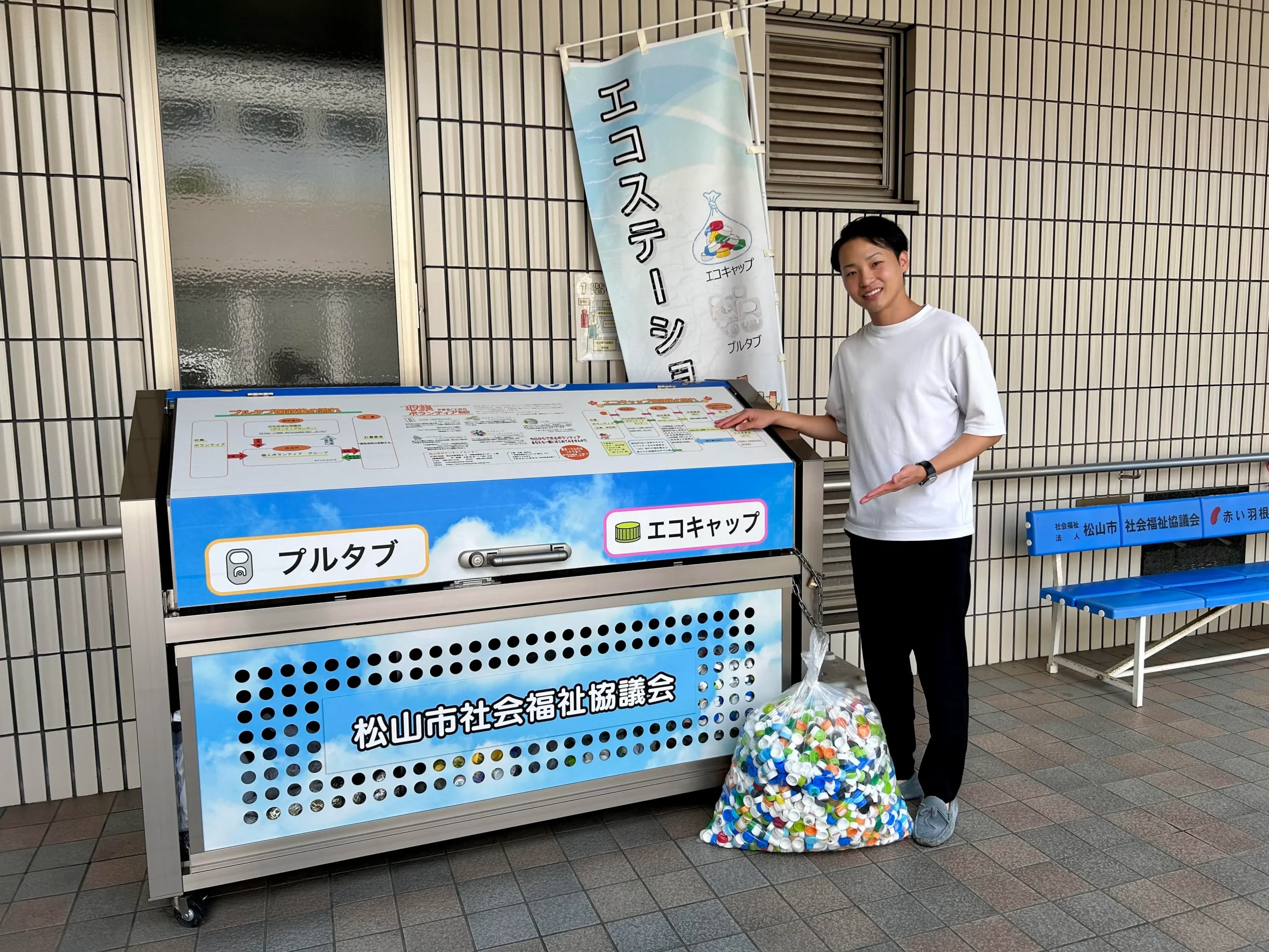 「エコキャップ」は、ペットボトルのキャップを回収・再資源化し、その売却益をワクチン寄付などの福祉活動に活用される予定です。