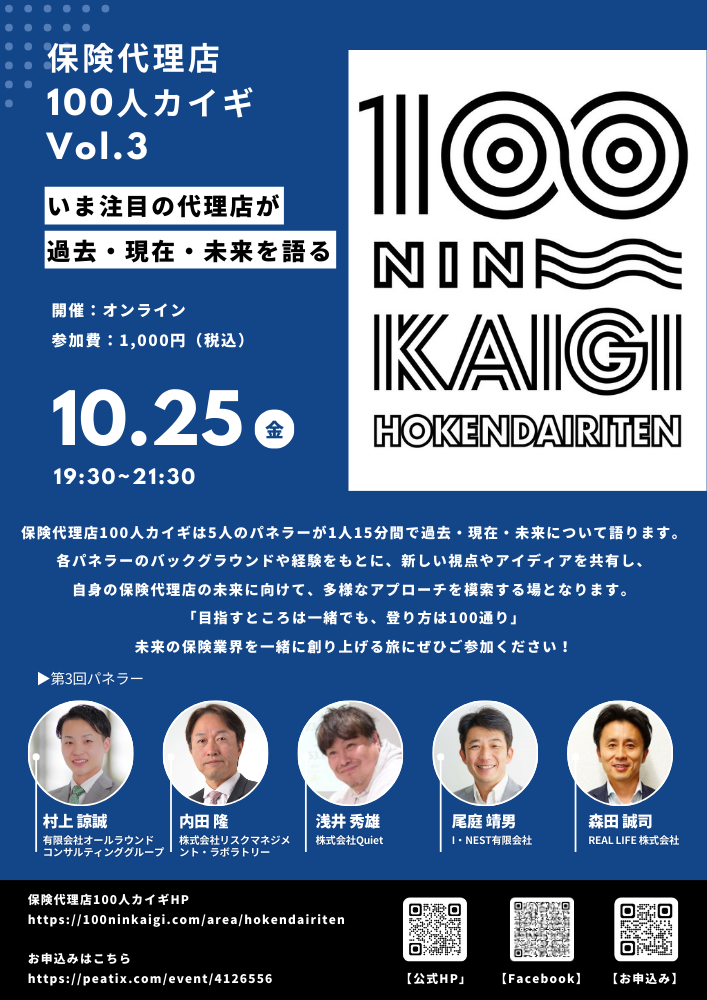 弊社、村上諒誠が保険代理店100人カイギVol.3のパネラーに登壇することが決定しました。